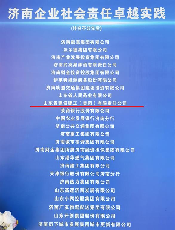 山東建工集團榮獲“濟南企業社會責任卓越實踐”榮譽稱號