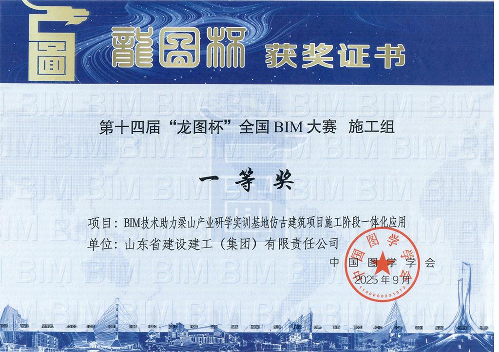 BIM成果:“龍圖杯”全國BIM大賽一等獎